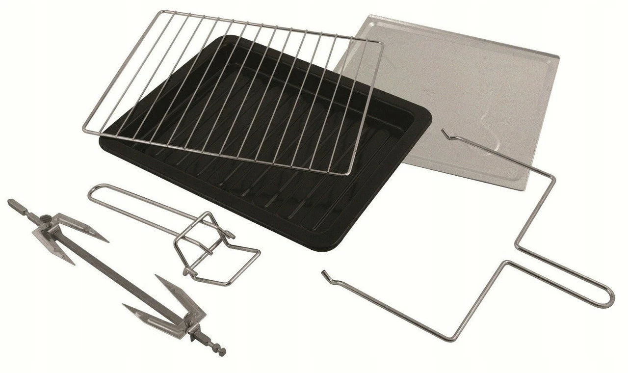 • Аксессуары: лоток для пиццы, решетка для гриля, держатель для кастрюли, гриль
