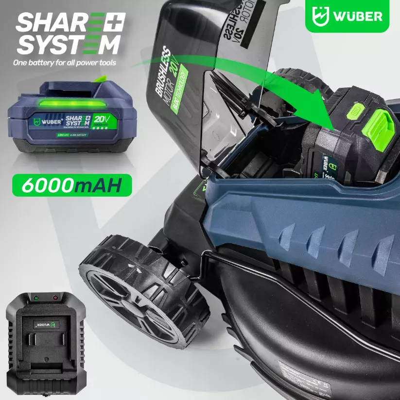 Wuber share + system - это специализированная линейка электроинструментов, работающих от УНИВЕРСАЛЬНЫХ АККУМУЛЯТОРОВ с высокой емкостью и одинаковым напряжением, подходящих для ВСЕХ устройств этой серии.