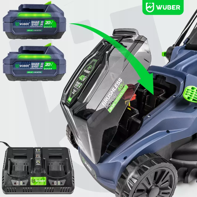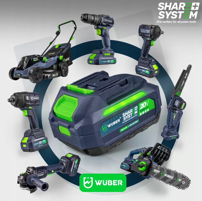 Wuber share + system — это специализированная линейка электроинструментов, работающих от УНИВЕРСАЛЬНЫХ АККУМУЛЯТОРОВ с высокой емкостью и одинаковым напряжением, подходящих для ВСЕХ устройств этой серии.