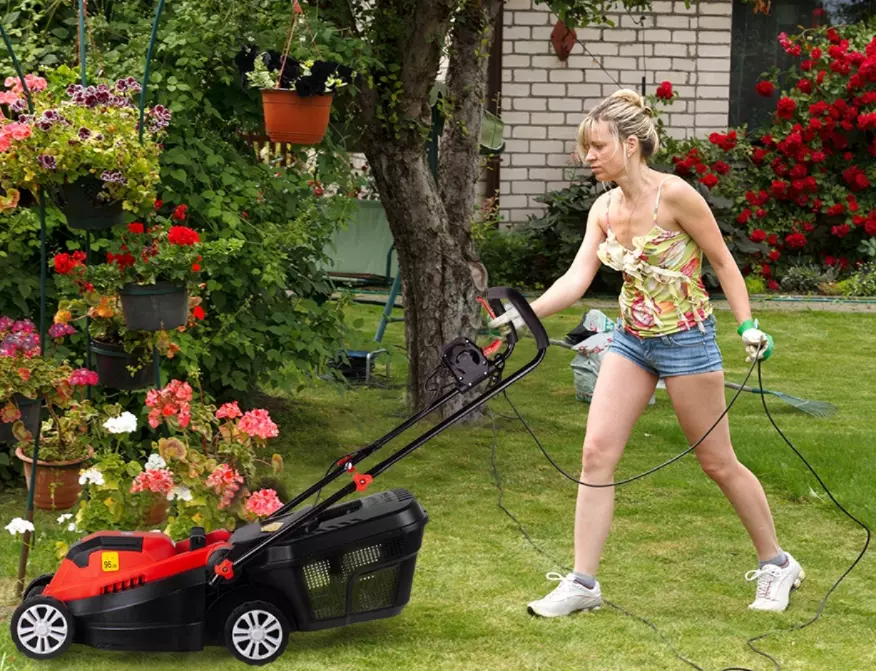 Стандартная ширина скашивания на электрических газонокосилках составляет 32 см.