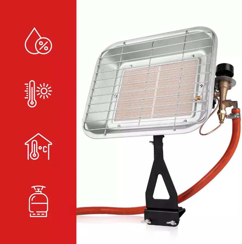 Газовый обогреватель использует керамическую горелку для получения тепла, в зависимости от температуры в помещении мы можем регулировать поверхность нагрева, чтобы обогреть помещение как можно лучше.
