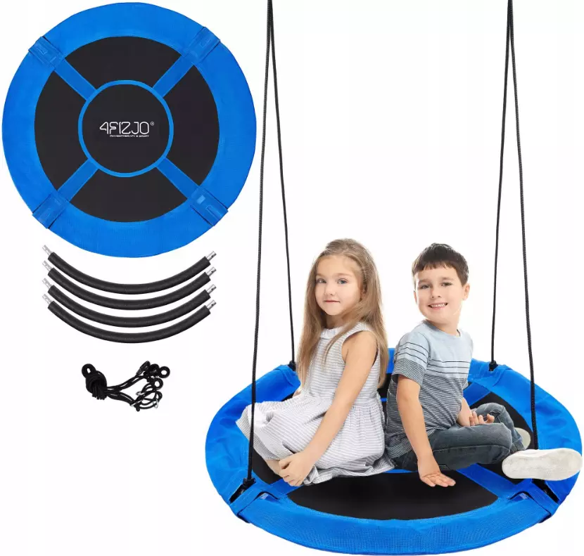 Садовые качели для детей от 4FIZJO - это так называемая модель "гнездо аиста". Это плоская модель, на которой ваш малыш может сидеть, лежать или стоять на коленях. Это металлические качели, а их элементы защищены мягким пенополиуретаном. Благодаря материалу сиденья и канатов, прочность качелей составляет 160 кг. Если вы хотите, чтобы старший ребенок качался вместе с младшим, не беда - прочность качелей позволяет это сделать. Еще одним очень важным элементом является размер сиденья - он составляет 110 cм.