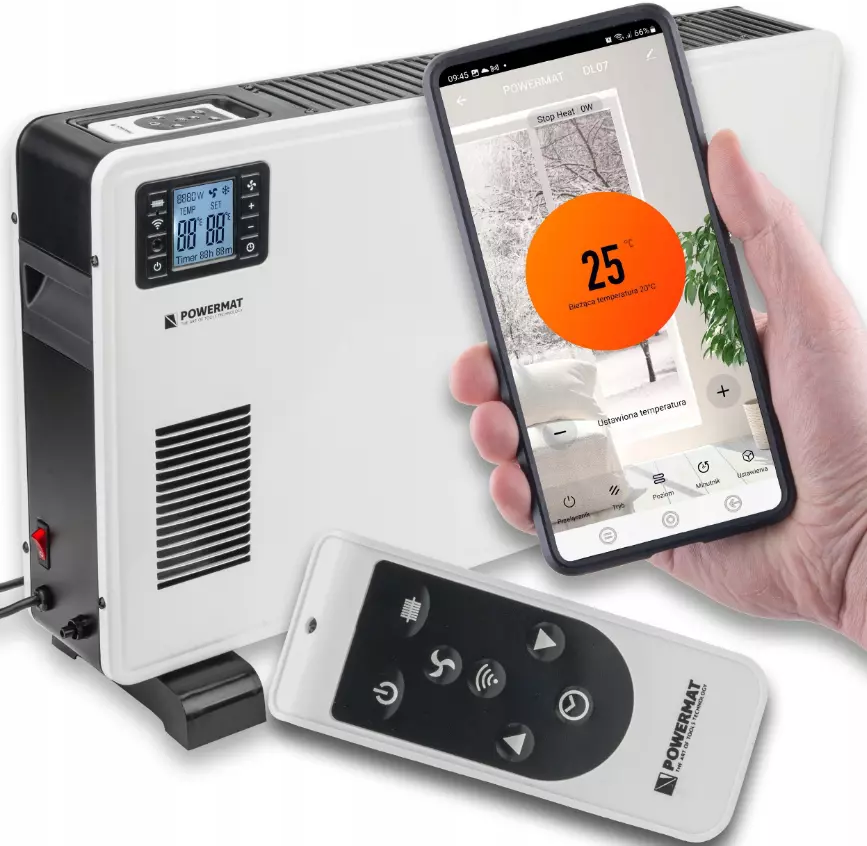 Новая модель с управлением через приложение и WiFi дополнительно оснащена ЖК-панелью с сенсорными кнопками, а также пультом PILOT! Пульт дистанционного управления. Забудьте о необходимости вставать с дивана, когда вам становится прохладно.