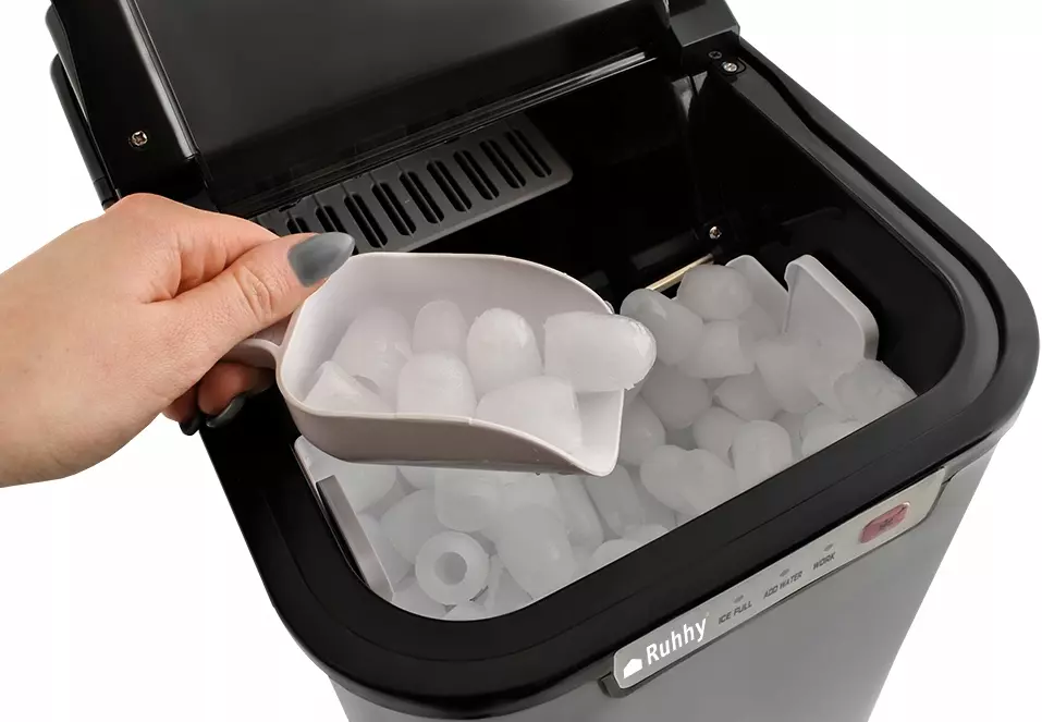 Кубики льда - это высокоэффективный прибор, позволяющий готовить прохладные напитки на вечеринках, в офисе и везде, где вам захочется. Идеально подходит для холодного кофе! Он очень прост в использовании. Вам не нужно прямое подключение к водопроводу. Просто налейте воду в резервуар, включите его, и льдогенератор начнет делать лед.