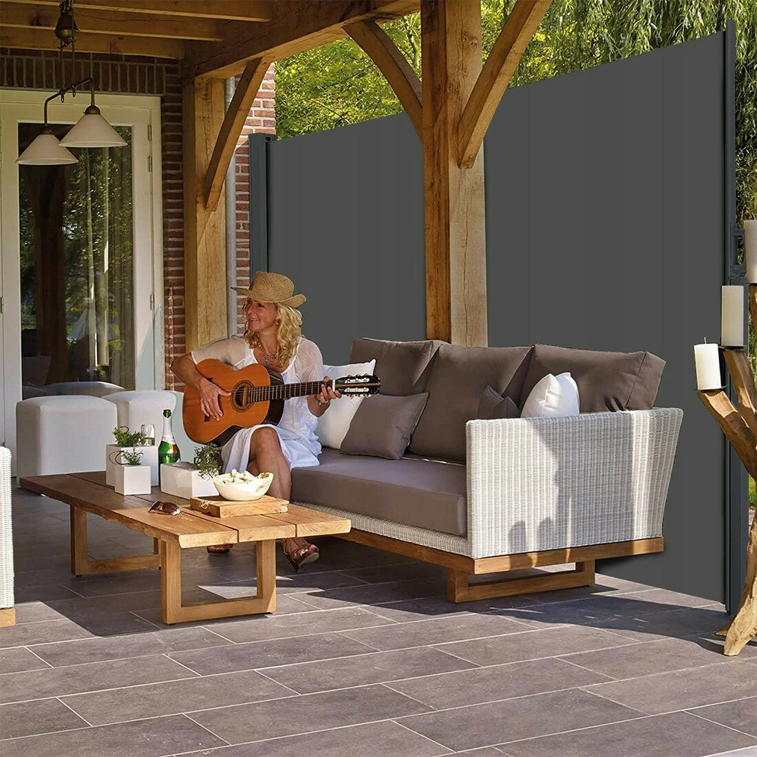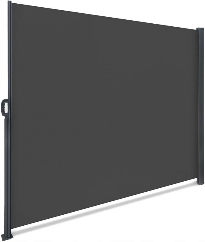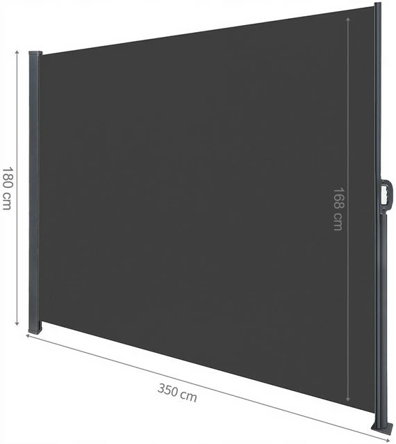 Этот боковой тент имеет систему автоматического складывания. Достаточно нажать спусковую кнопку на ручке и шторка сама спрячется в кассету. Это так просто!