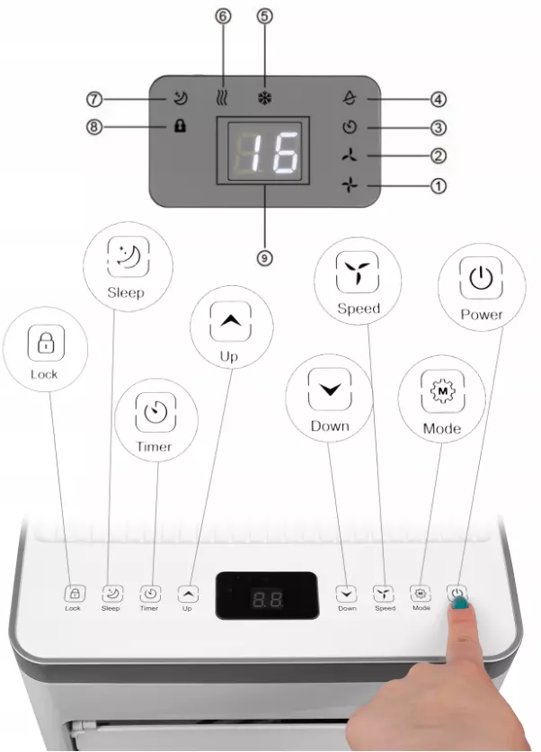 Кроме того, кондиционер оснащен функцией SLEEP, которая отключает подсветку и параметры на дисплее, чтобы они не ослепляли вас, когда вы ложитесь спать.