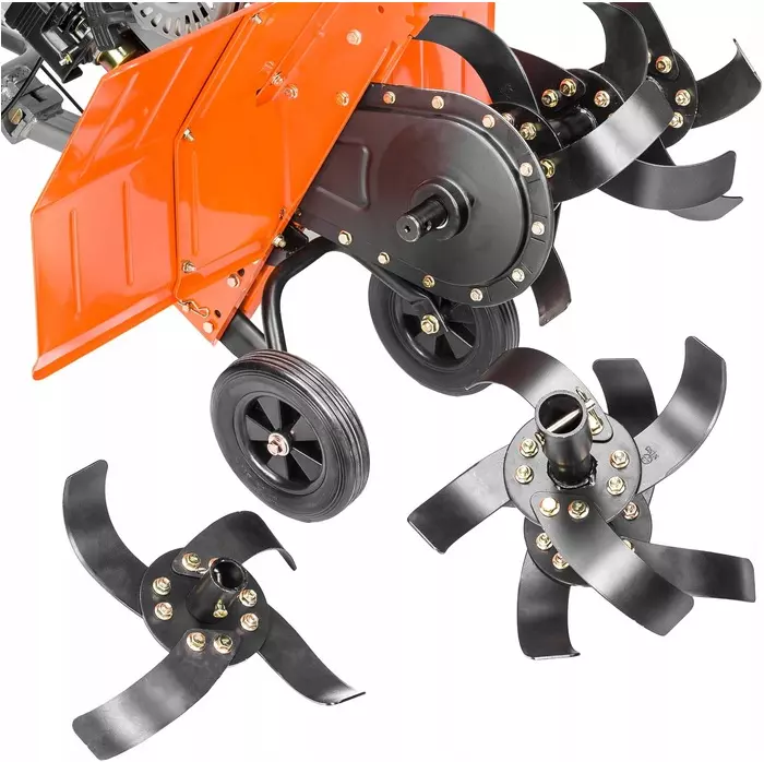 Ножи профилированы для автоматического вгрызания в почву.