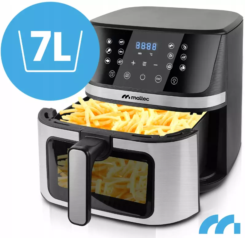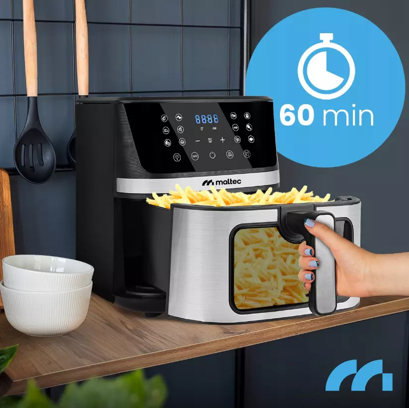 Фритюрница без жира MalTec AirFryer1800W-7L - это здоровый способ приготовления легкой и вкусной пищи. Благодаря технологии высокоскоростной циркуляции горячего воздуха прибор позволяет жарить чипсы, курицу, рыбу, овощи и даже выпекать пироги без использования масла.