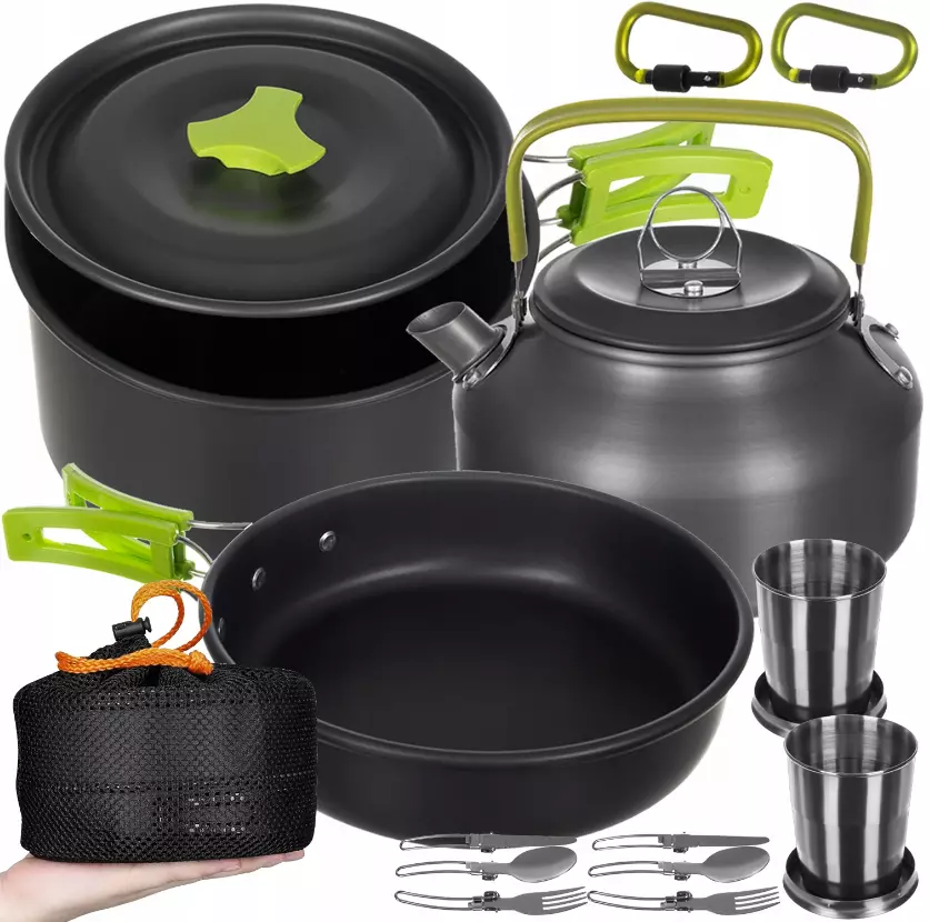 Походная посуда - это набор, который можно использовать практически в любом месте. Он отлично подойдёт как для дома, так и в дороге - например, на кемпинге или в палатке. Набор рассчитан на 2 человек. Складные ручки обеспечивают лёгкую транспортировку посуды.