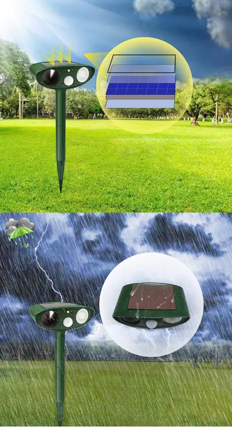 Отпугиватель животных питается от солнечной энергии, собираемой