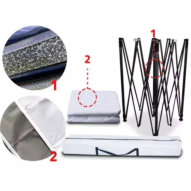 Система защелок позволяет легко собирать, разбирать и регулировать складной павильон.