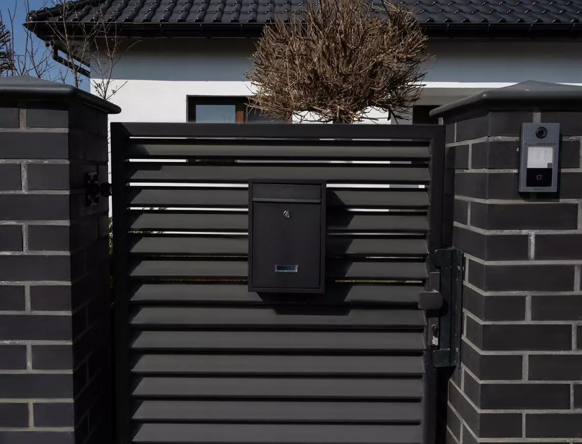 Дверь фронтального открывания оборудована окошком, в котором можно поставить адресную отметку. Он также служит глазком, чтобы увидеть, есть ли внутри письмо. Однако адресная маркировка не должна быть слишком высокой, чтобы не загораживать весь видоискатель. Дверца закрывается на замок с закрывающим рычагом и открывается на угол 90°, что обеспечивает легкий доступ внутрь почтового ящика, а значит, оперативное удаление из него корреспонденции даже большего размера.