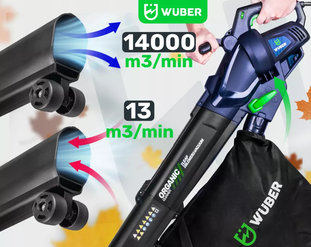 ✔️ Высокая выходная мощность 3000 Вт, которой более чем достаточно для уборки листьев, травы, снега в саду или на подъездной дорожке
