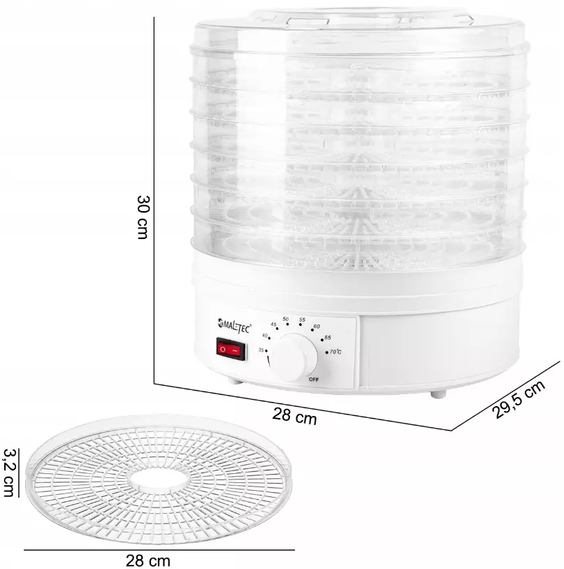➡️ 8-ступенчатая регулировка температуры от 35-70°C позволит вам идеально настроить температуру в зависимости от типа сушащихся продуктов.