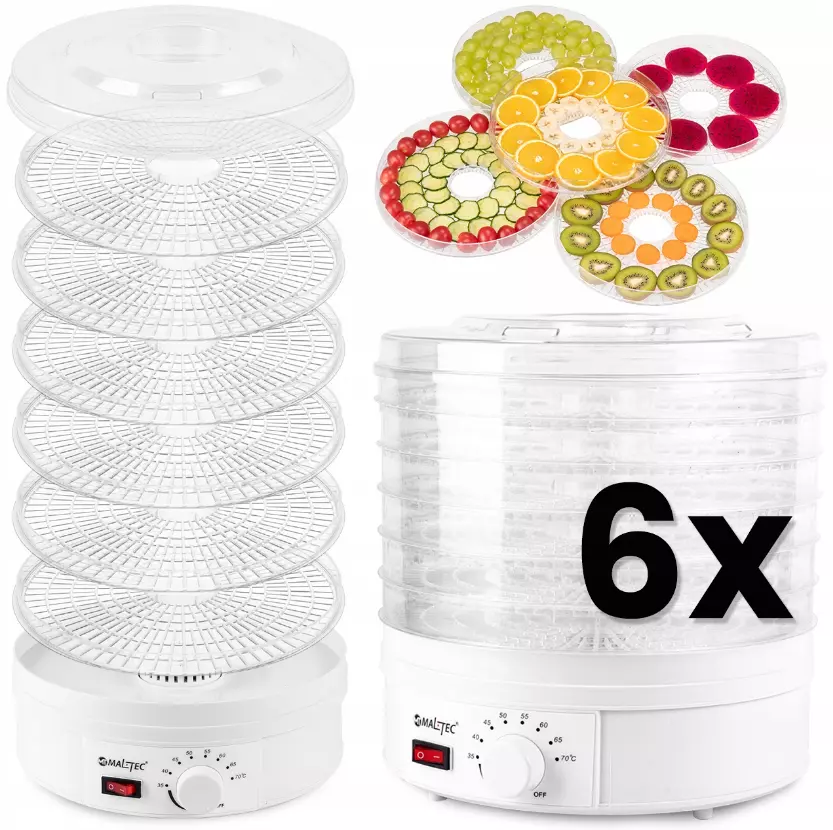 ➡️ До 6 крупных сит, обеспечивающих большую поверхность сушки. Вы можете высушить очень большое количество продуктов за один раз