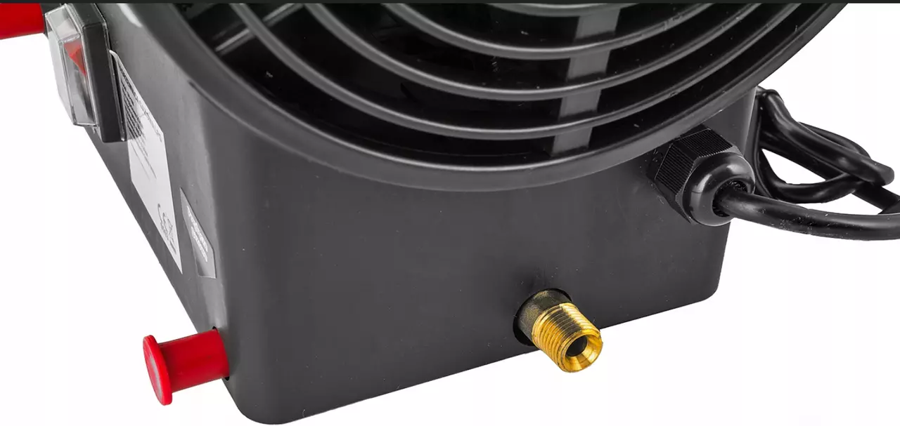 ⏩ Процесс горения происходит в открытой камере сгорания, воздух, всасываемый вентилятором, нагревается и затем выдувается из обогревателя. Для его работы не требуется дымоход, необходимо лишь обеспечить приток воздуха для правильного горения.