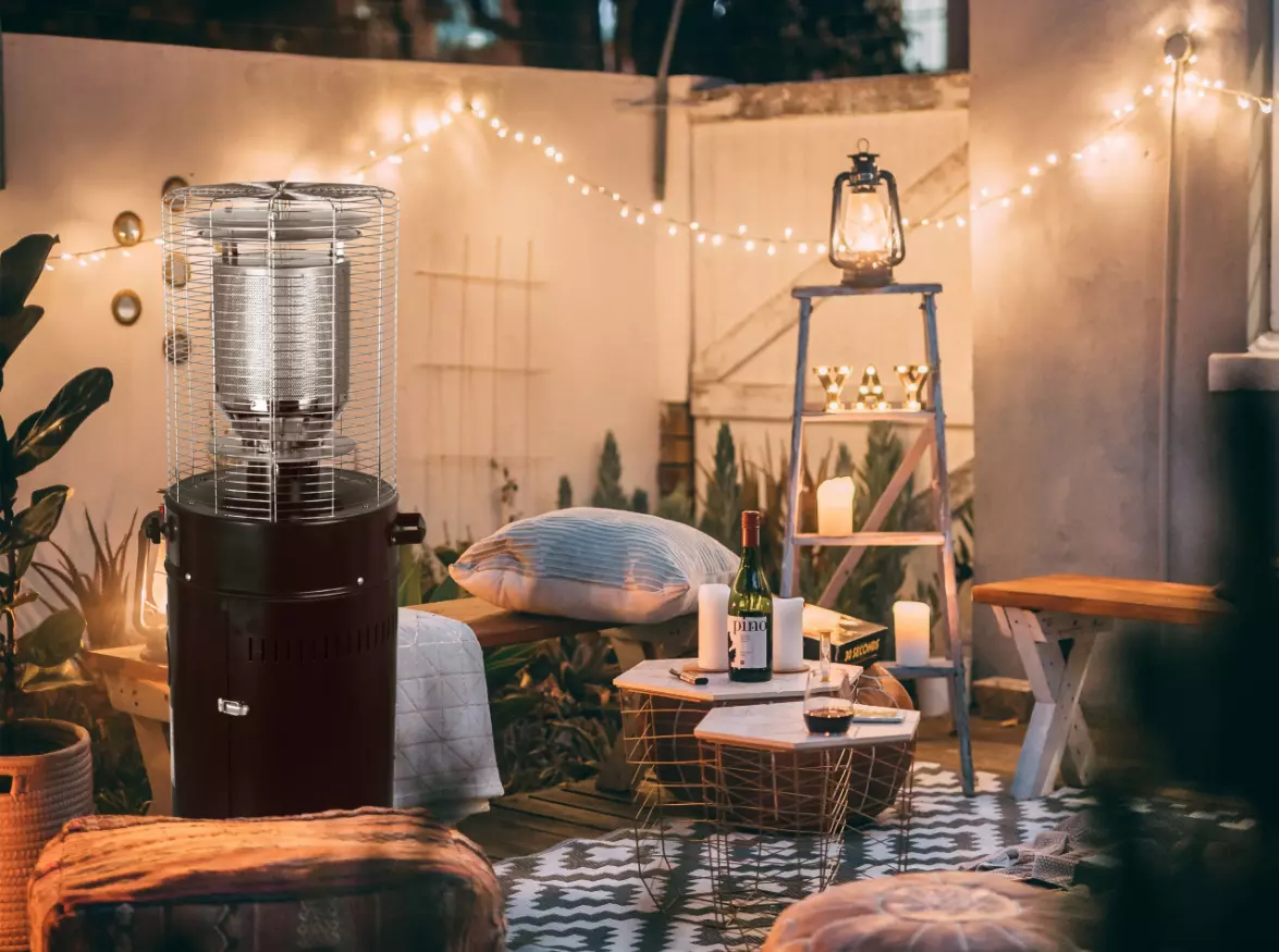 Компактный излучающий обогреватель, который наиболее эффективно согревает сидящих за столиком в кафе или на шезлонге. Высотой почти 1,4 метра, он наиболее эффективно распределяет тепло в низких помещениях или беседках. Лучистые обогреватели для патио - отличное решение для патио, террас, садов на заднем дворе, кафе и ресторанов. Они позволяют продлить сезон летних обедов на открытом воздухе. Благодаря своей высоте Tropical могут поместиться в низких беседках, а излучаемое тепло на высоте 1,2 метра будет эффективно прогревать окружающее пространство. Они также незаменимы при проведении мероприятий на открытом воздухе или под садовыми тентами. Приборы работают на жидком газе в баллоне, который испускает безвредное инфракрасное излучение, воспринимаемое людьми как тепло.
