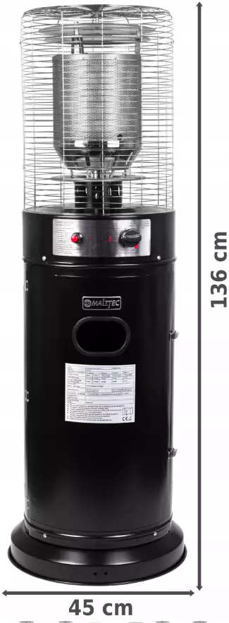 Зонт Maltec изготовлен из материалов высочайшего качества. Благодаря этому он имеет современный вид и вписывается даже в самую требовательную обстановку. Небольшая высота эффективно согревает помещение на нужной высоте и прекрасно впишется в большинство ресторанных садов.