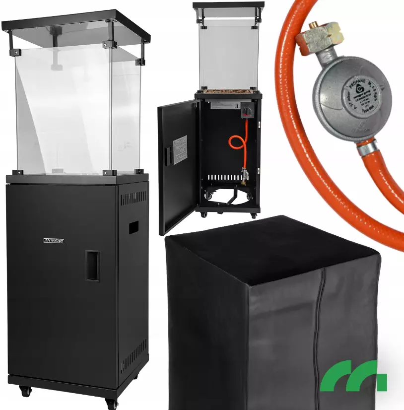 Прибор работает на сжиженном газе в баллоне, который испускает безвредное инфракрасное излучение, воспринимаемое человеком как тепло. Воспринимаемая температура воздуха в зоне действия лампы составляет 18-20°C, несмотря на гораздо более низкую температуру окружающей среды.