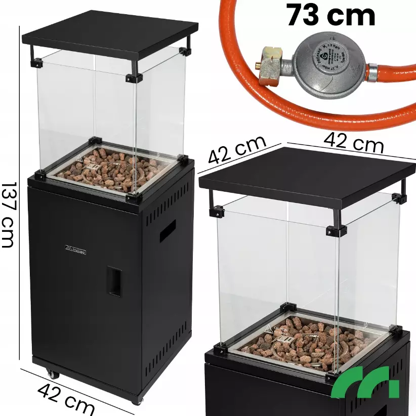 Уникальная особенность прибора заключается в том, что огонь виден с четырех сторон. Это делает его единственным в своем роде газовым светильником для патио или сада.