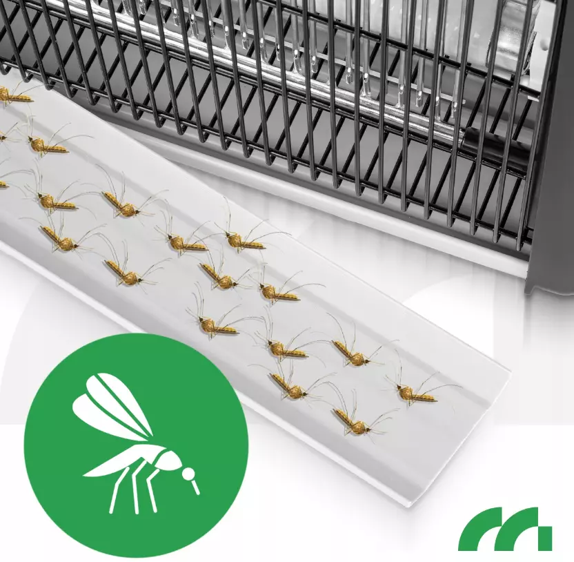 Лампа работает простым и эффективным способом. Она излучает ультрафиолетовый свет, который привлекает летающих насекомых, таких как мухи, мотыльки или комары. Насекомые, привлеченные флуоресцентными трубками (3x20 Вт УФ), попадают на высоковольтную сетку 3800 В, где их убивает током.
