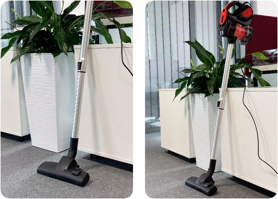 Благодаря длинному шнуру и телескопической трубке пылесос имеет большой радиус действия, что позволяет пылесосить большую площадь.