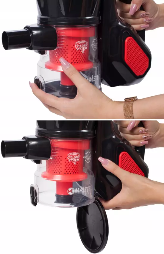 В любой момент, отсоединив ручку с механизмом, мы можем промыть резервуар и фильтры, чтобы тщательно удалить остатки грязи. Это гарантирует, что прибор будет полностью очищен от грязи и фильтры можно будет использовать многократно.