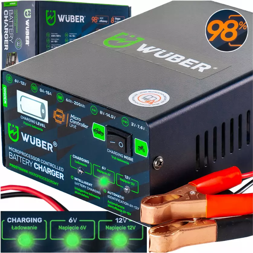 Зарядное устройство Wuber создано для эффективной зарядки аккумуляторов, используемых в автомобилях с системой старт/стоп.