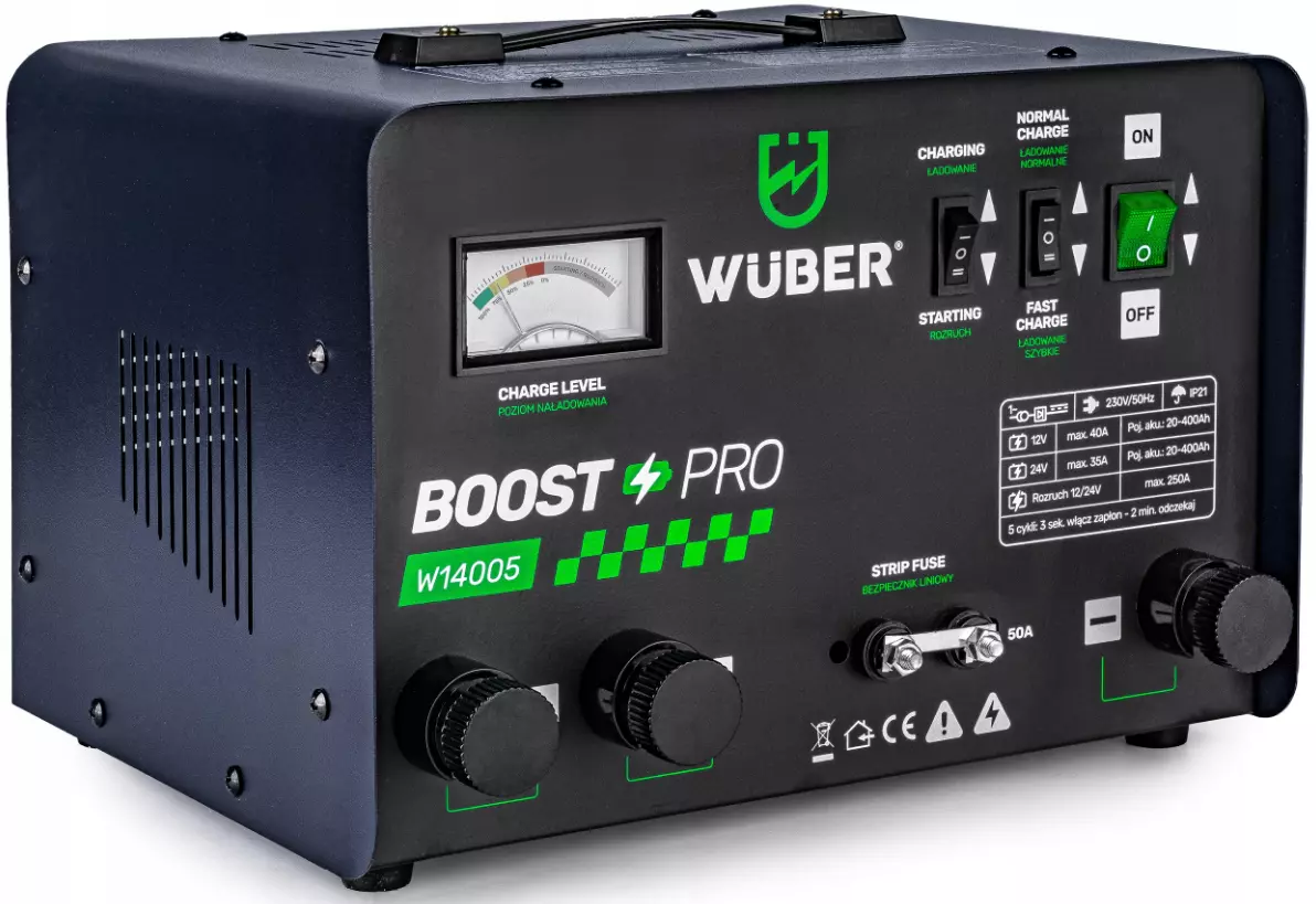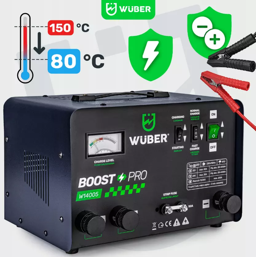 Зарядное устройство Wuber предназначено для эффективной зарядки аккумуляторов, используемых в автомобилях с системой «старт-стоп».