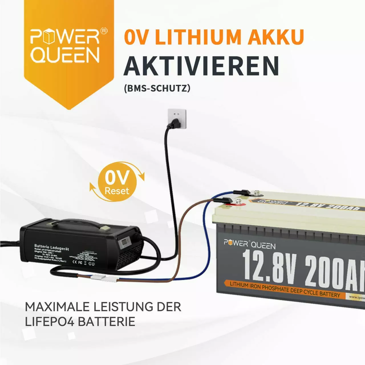 Зарядное устройство для литиевой батареи POWER QUEEN 14,6 В, 40А имеет эксклюзивный режим предварительной зарядки, который может сбросить или «разбудить» батарею, защищенную BMS. Просто подключите зарядное устройство к аккумулятору, чтобы начать перезапуск, который зарядит аккумулятор от 0В и продлит срок его службы.