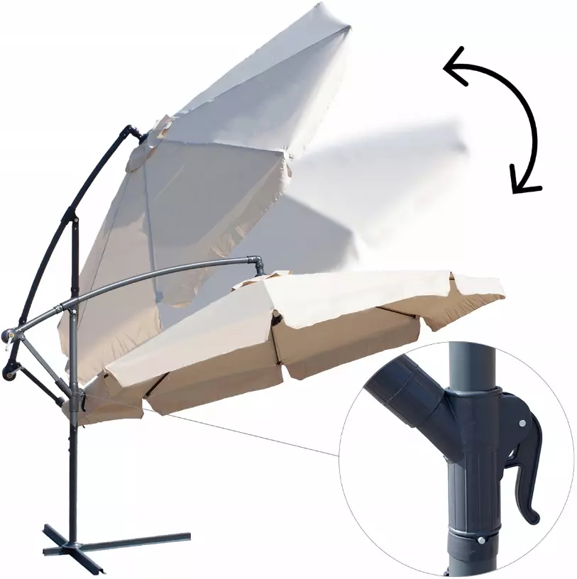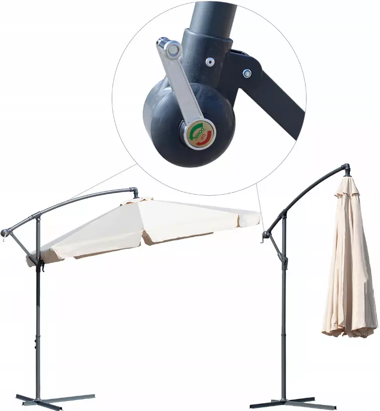 Это возможно благодаря удобной кривошипной ручке, которая отвечает за открытие и закрытие козырька зонта. Просто поверните ее, и садовый зонт раскроется или сложится. Это очень безопасное решение для пользователей.