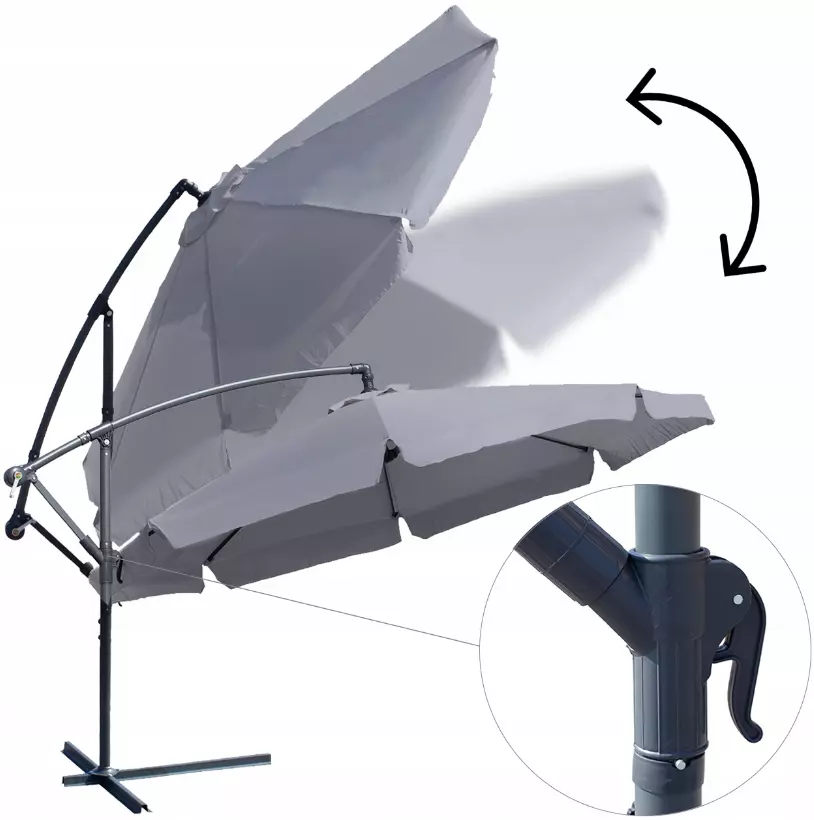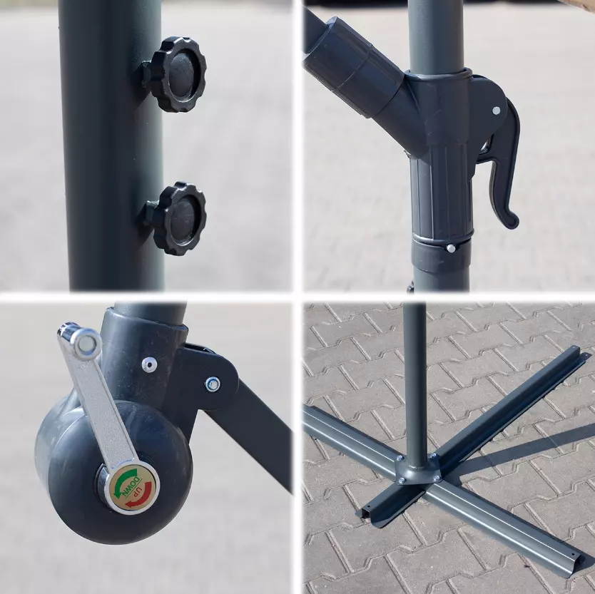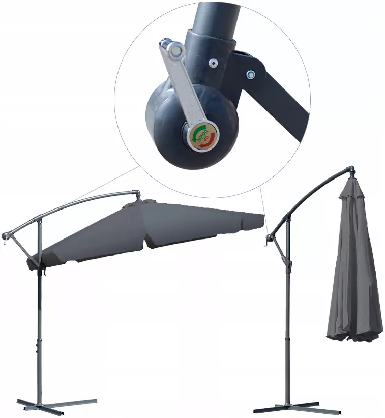 Это возможно благодаря удобной кривошипной ручке, которая отвечает за открытие и закрытие козырька зонта. Просто поверните ее, и садовый зонт раскроется или сложится. Это очень безопасное решение для пользователей.