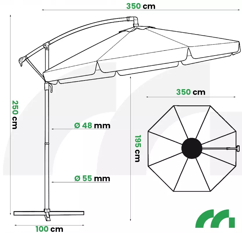 Выбирая наш зонт, вы можете быть уверены, что он прослужит вам долгие годы. Конструкция нашего зонта изготовлена из высококачественной стали, которая прошла обработку, пескоструйную обработку, а затем только порошковую окраску. Это гарантирует его устойчивость к любым вредным веществам.